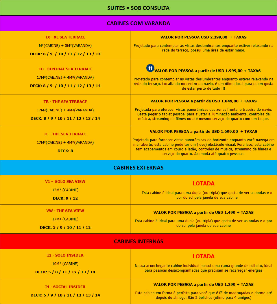*** ROTEIRO PODE SOFRER ALTERAÇÕES CONFORME DECIÇÃO DA CIA MARÍTIMA